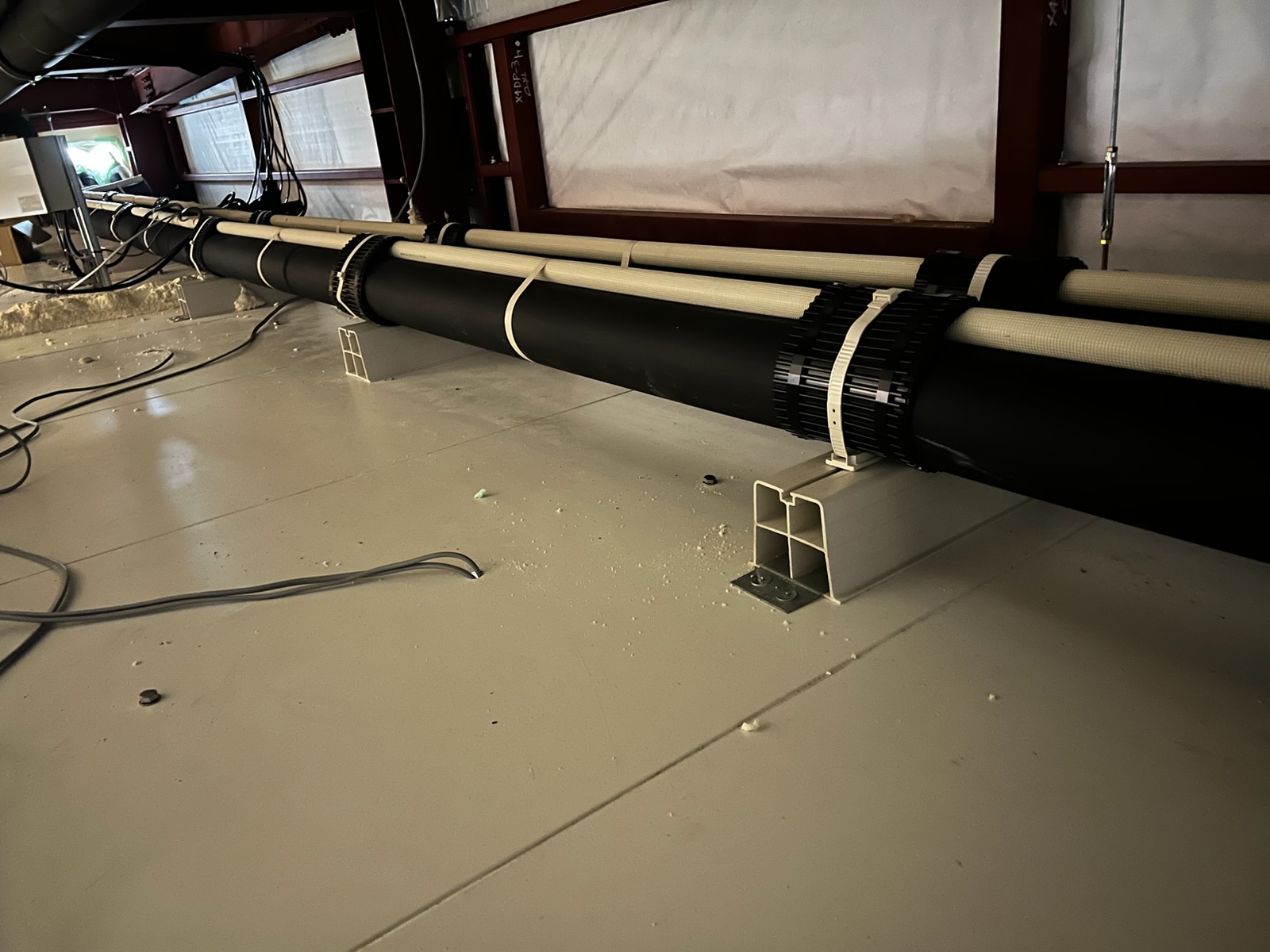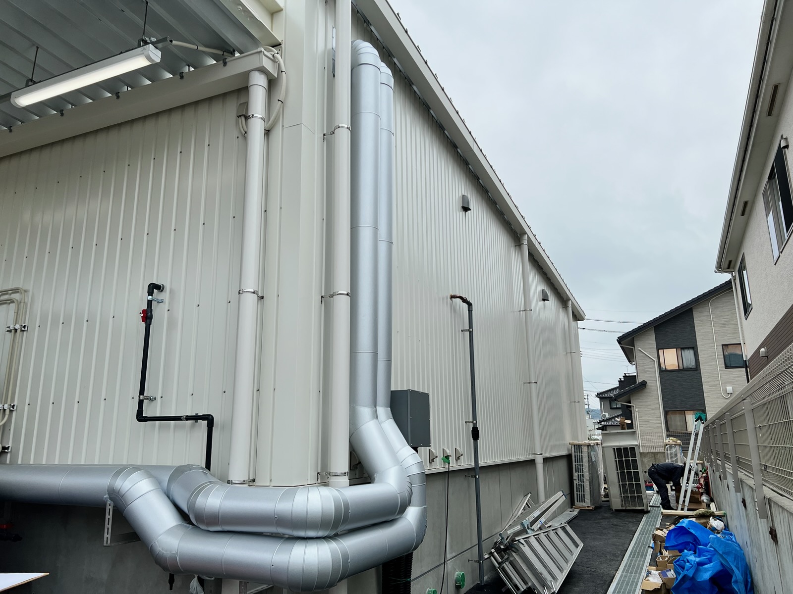 水産品を保存する為の冷凍庫を冷やす為の冷凍機取付を行いました。 冷凍配管は保温材が厚い為、施工が大変ですが綺麗に仕上がりました!