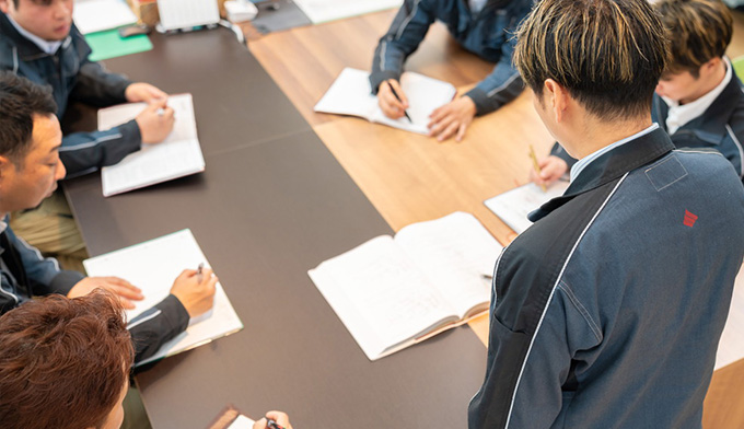 新しい工法や資材が出た際は、社内で検討会を実施。効率化や品質向上を目的に、次の現場で活かせないか話し合います。